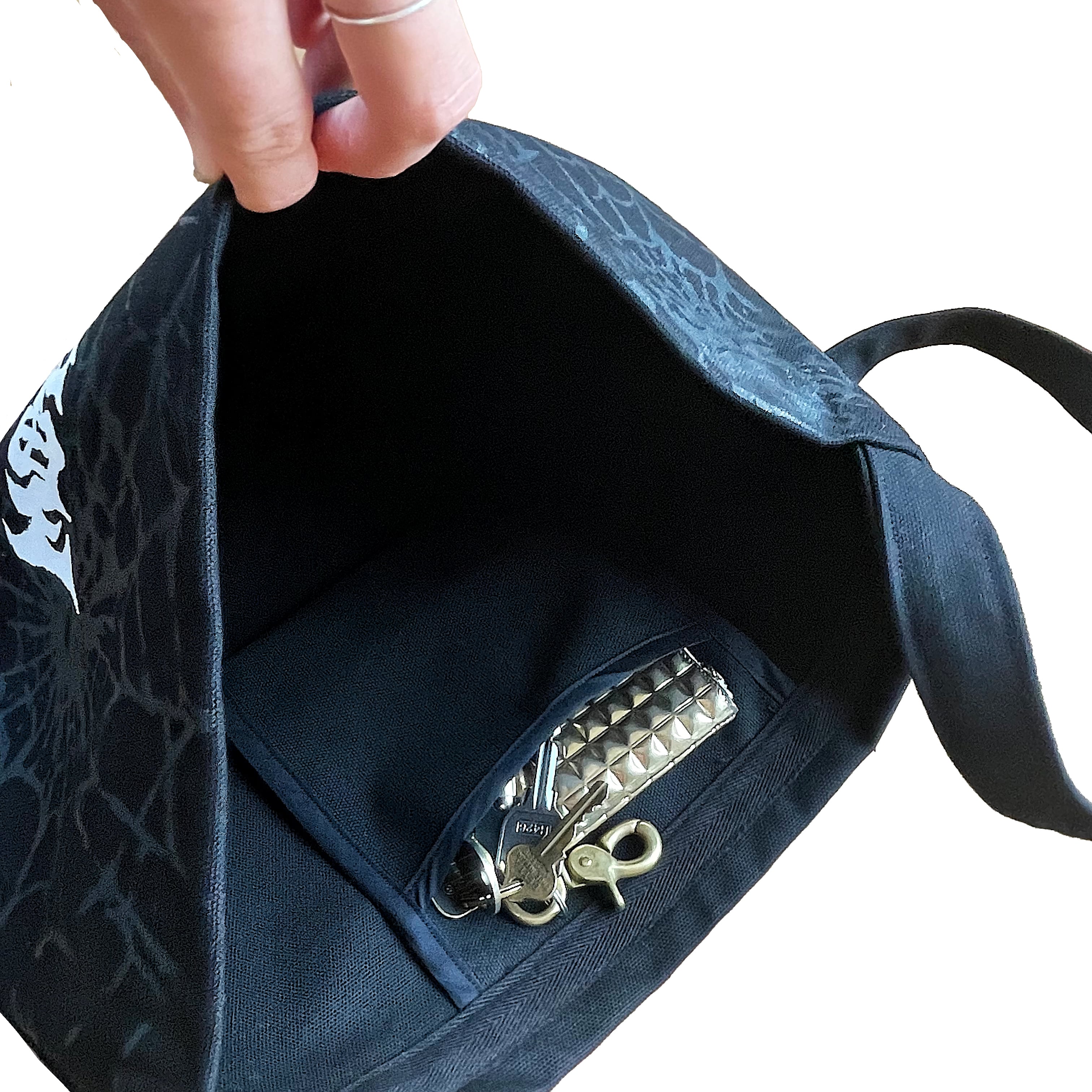 内側にはポケットが付いていて、小物類を収納できます。
